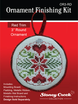 What a great way to finish your Christmas designs! Finishing kit includes 3" round mounting board, padding, metallic ribbon, metallic mat board and finishing instructions. Design shown, sold separately, is featured in the Autumn 2012 issue of the Stoney Creek Magazine.
