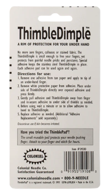 Optimize needle placement with the versatile design of the Thimble Dimple. Made from stainless steel with a smooth, single dimple surface, this tool guarantees needle control for precise crafting and sewing. Includes 8 replacement adhesives for lasting use.