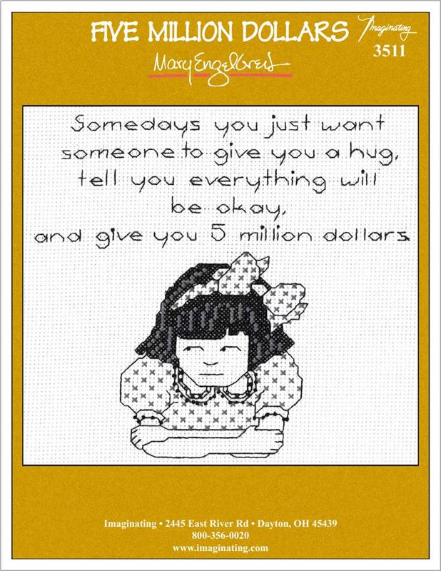 Part of the Engeldark series, this project includes full stitches, backstitching, quarter stitches and French knots. Five Million Dollars is designed to be stitched on 14ct White Aida fabric and uses 2 different colors of floss.