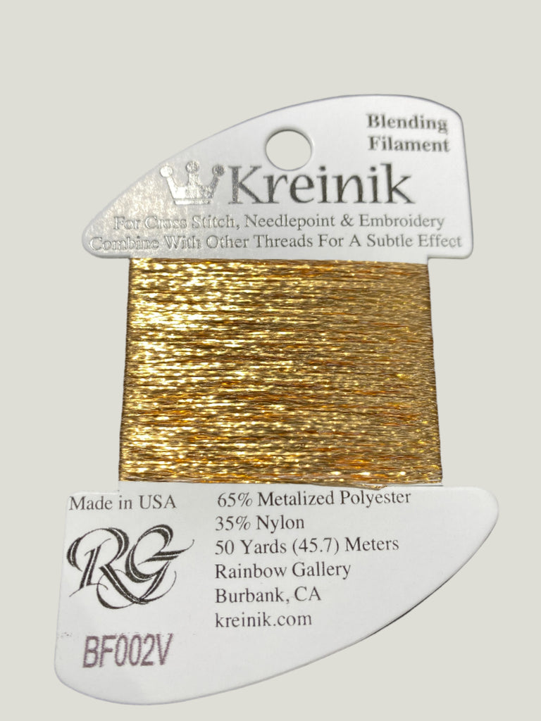 In 2024, Rainbow Gallery purchased Kreinik and the threads will be on cards going forward, shipping will be adjusted when needed. Prices will be updated, and old stock sold at the old price while supplies last.