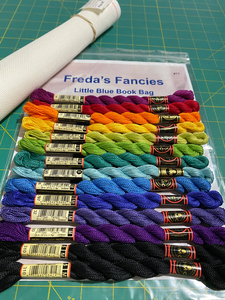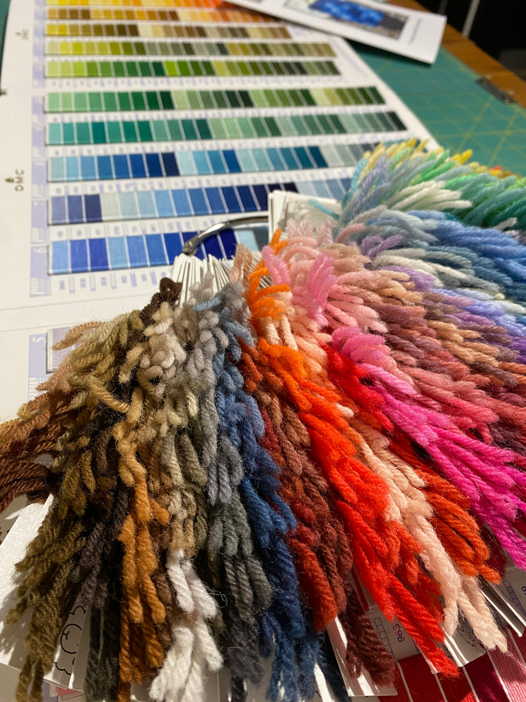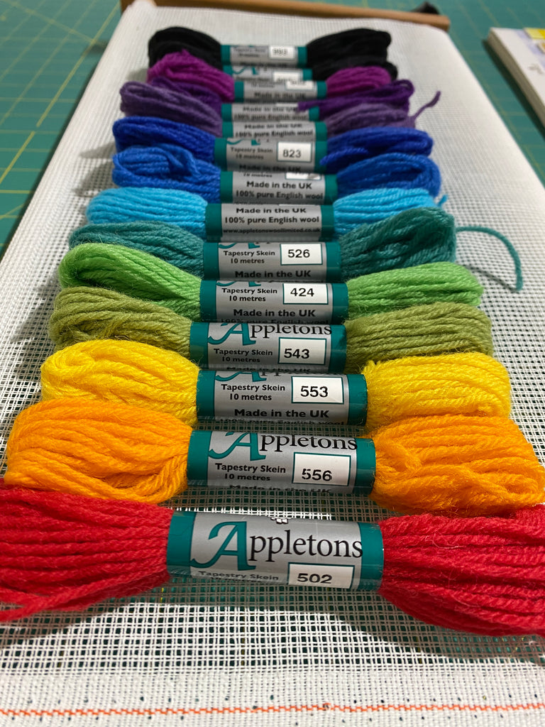 The Wool Kit has been adjusted as I have stitched the sample. To do the full bag and have enough wool for any colour combination it is best to use Hanks. You will have 25 g, which is 55m of tapestry weight of each colour plus Black. The Hanks will be special ordered for you directly from Appletons Wool, so if you would like to switch out a colour please let me know!